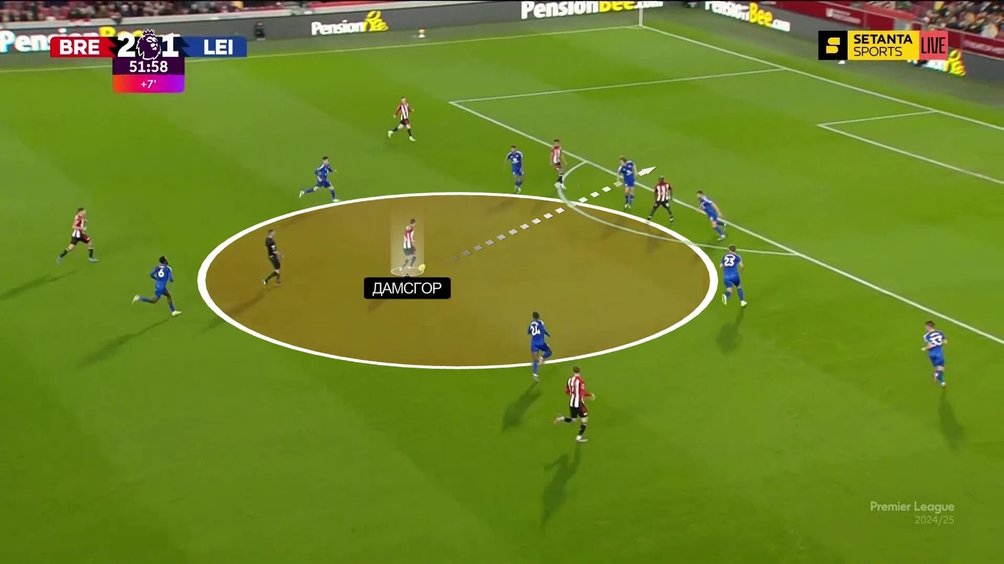 В последние годы у Миккеля Дамсгора были проблемы, но этот сезон выглядит прорывом. Против «Лестера» (4:1) он был главным игроком «Брентфорда», даже несмотря на хет-трик Кевина Шаде. Типичный по этому сезону уровень влияния на игру.