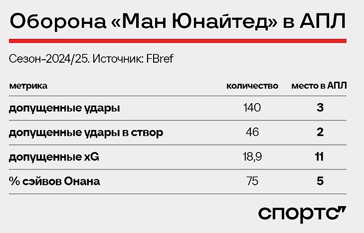 Увидели причину – ловите следствие. В прошлом сезоне оборона «Юнайтед» допустила 660 ударов по воротам (19-е место в лиге), 203 – в створ (15-е). Онана расстреливали как вратаря из клуба зоны вылета – еще никогда в карьере Андре не сталкивался с таким объемом работы.
