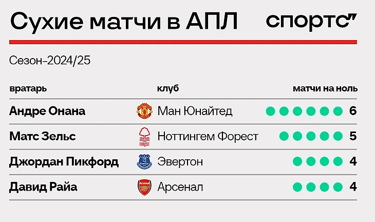 В сезоне-2024/25 в «Манчестер Юнайтед» нет более важного и стабильного футболиста, чем Андре Онана. Камерунец – лучший в АПЛ по сухим матчам, забрал приз лиги за сэйв месяца и стал лучшим игроком клуба в октябре.