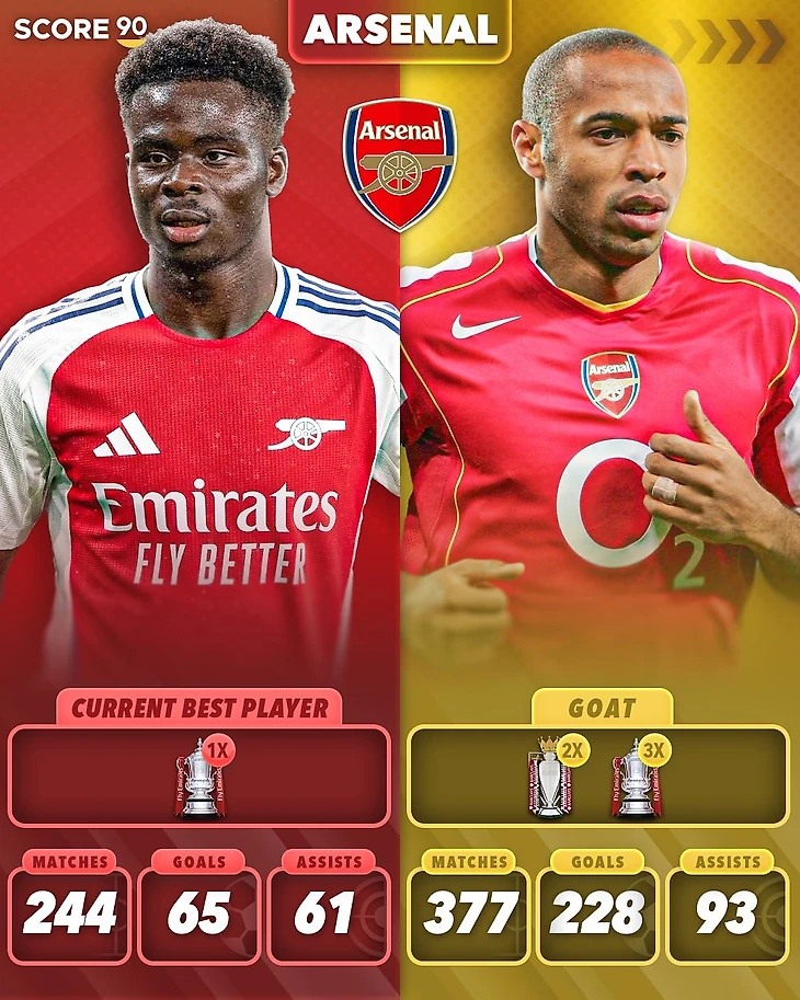 Букайо Сака пока уступает Тьерри Анри по всем параметрам, но у молодого англичанина есть еще много времени, чтобы сравняться и даже обойти легенду «канониров».