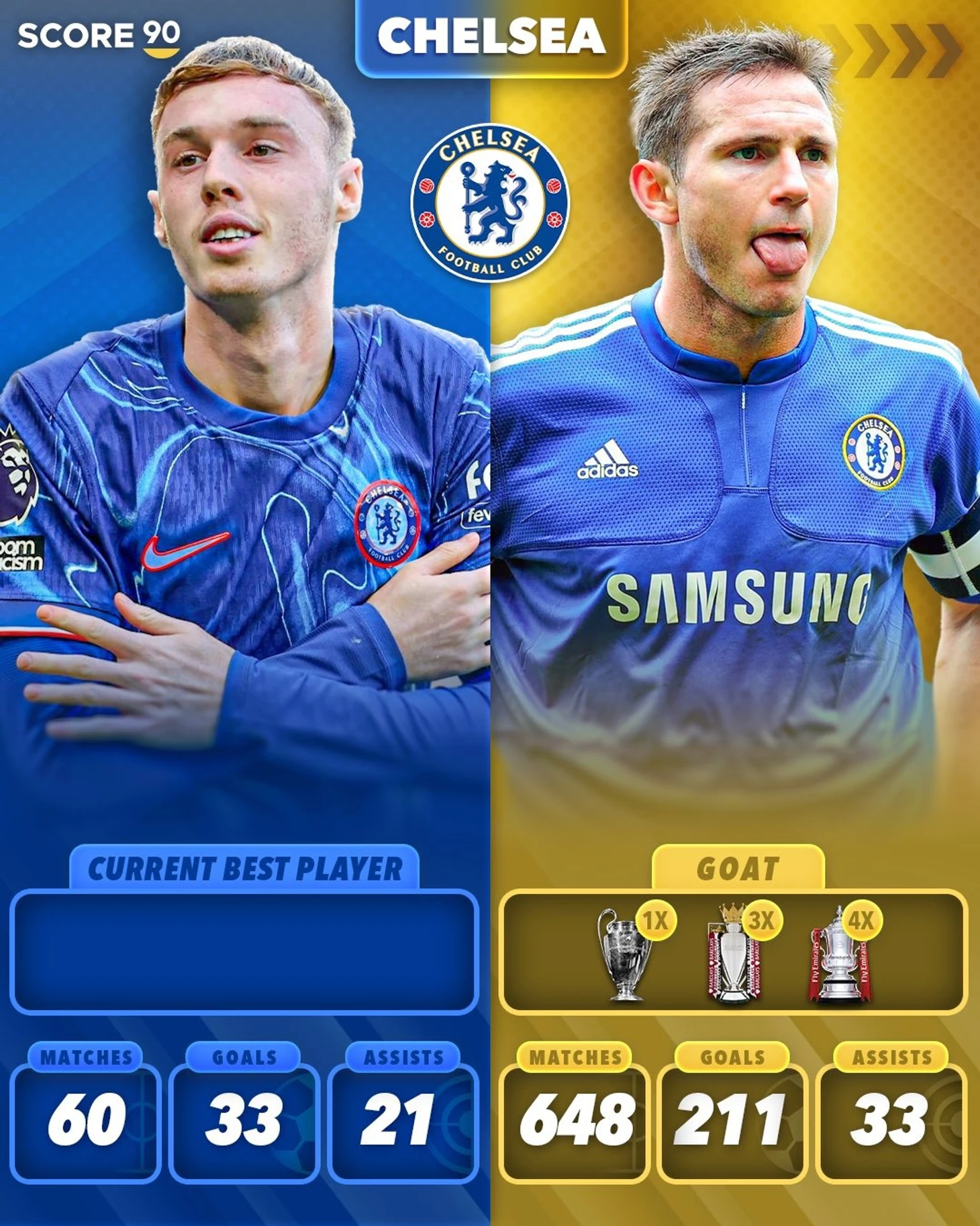Коул Палмер мог быть лучшим игроком «Сити», но сейчас он блистает в стане «синих». Все же молодой англичанин уступает легендарному Фрэнку Лэмпарду по всем параметрам, особенно грустно выглядит пустая строка с трофеями.