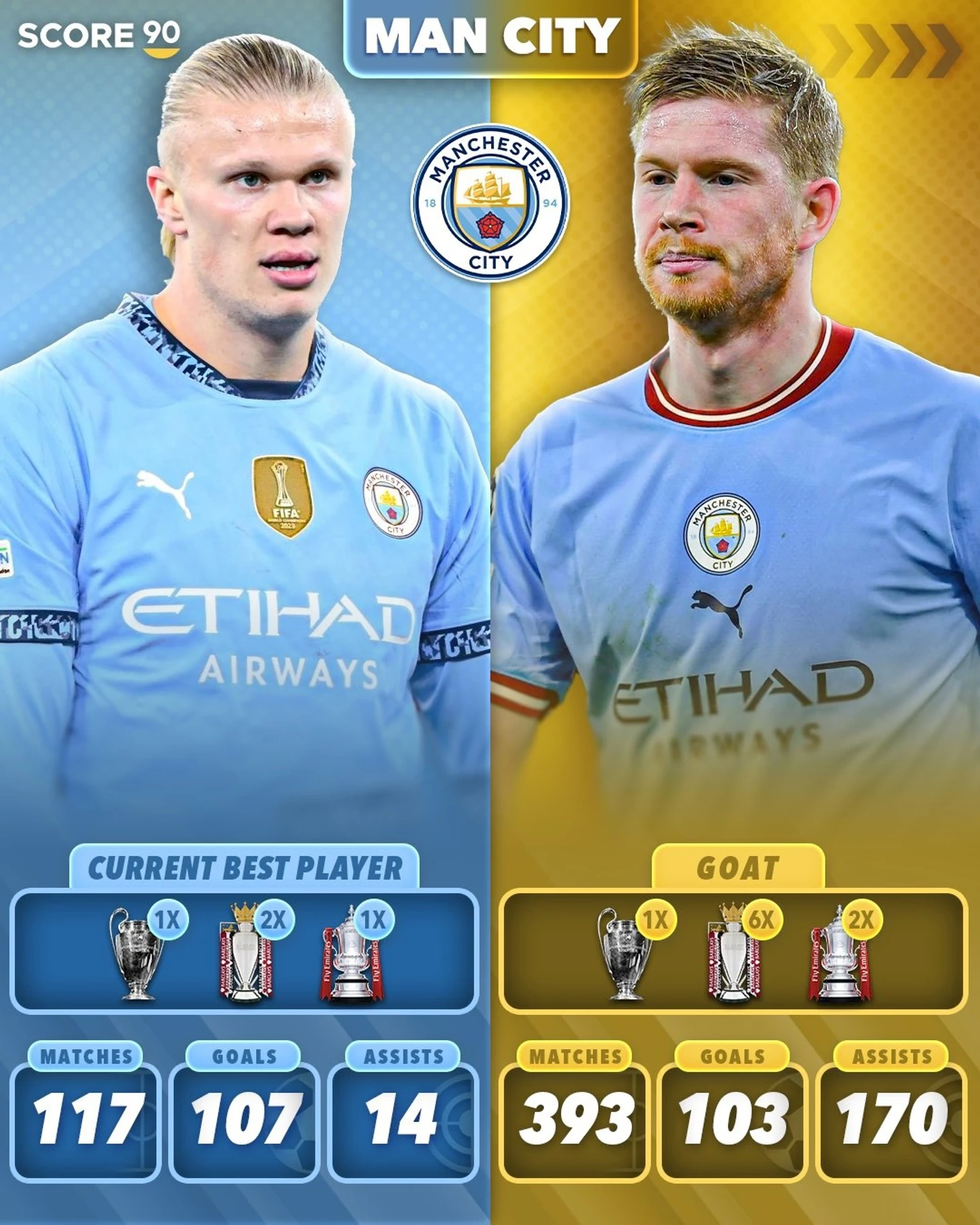 У «горожан» соревноваться будут одноклубники. Де Брюйне в статусе легенды «Сити» уступает Холанду лишь по голам, у Эрлинга на четыре мяча больше.