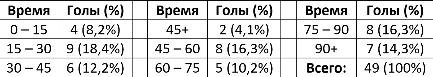 Футбол красен голами, к тому же без забитых мячей невозможно победить – именно поэтому начнем наш обзор с атакующих действий команд. Какие действия считать таковыми – можно обсуждать и спорить, ведь любая атака начинается с отбора, перехвата или технической потери соперника. Для удобства давайте договоримся, что атакующие действия – это все ТТД, выполненные футболистами в то время, когда их команда владеет мячом. Но прежде всего, это забитые голы.