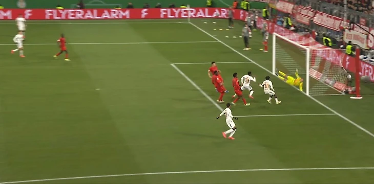 На 61-ой минуте Натан Телла заменил Патрика Шика, а на 69-ой оказался один в штрафной соперника и точно попал головой в правый угол ворот «Баварии». Что он сделал для того, чтобы оказаться там в удобной позиции?
