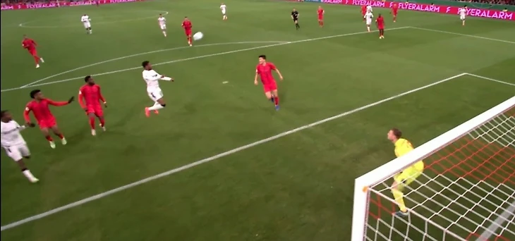 Четвертое: мяч движется обратно в центр, тут Натан сделает решающее открывание за спину Ким Мин Чже (отмечен красной стрелкой) и окажется с другой стороны от него, далее это сыграет ключевую роль.