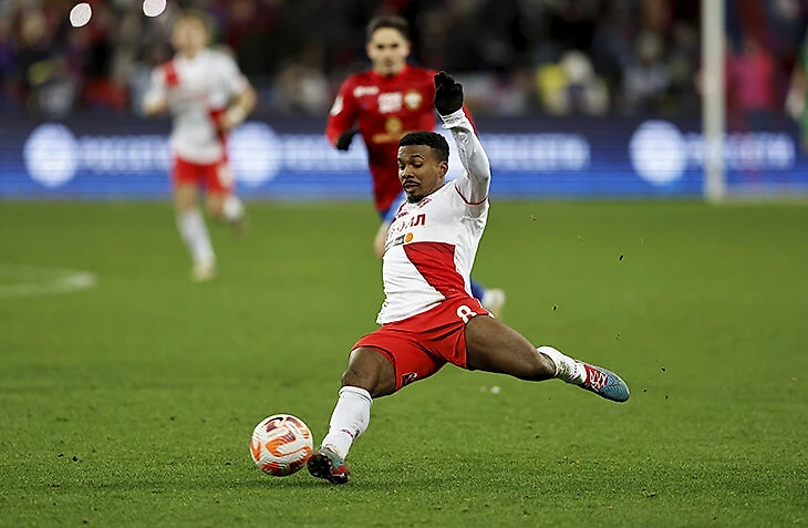 Маркиньос мощно готов: неустанно бежит назад и мгновенно переключается на быстрые отрывы. Это скрытый атакующий резерв «Спартака»: после единоборств Маркиньос вылетает вперед и ищет Барко.