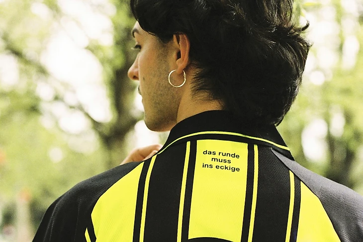 Дизайнеры Parco Studio и Palazzi.club вдохнули новую жизнь в исторические футболки, украсив их уникальной графикой. На месте спонсорского логотипа – слова «Runde» и «Eckige», представленные в пяти различных вариантах, заставляющие задуматься о роли спонсоров в формировании визуальной культуры футбола. Желтая нить, проходящая через вертикальные полосы, напоминает о потрепанных футболках, носившихся бесконечно на итальянских полях. Цифры от 1 до 5 на спине и фраза на воротнике завершают уникальный дизайн каждой футболки. А изображение Зеппа Хербергера, подмигивающего с груди футболки, – это дань уважения тренеру, который привел свою команду к победе, став символом триумфа над невероятными трудностями.