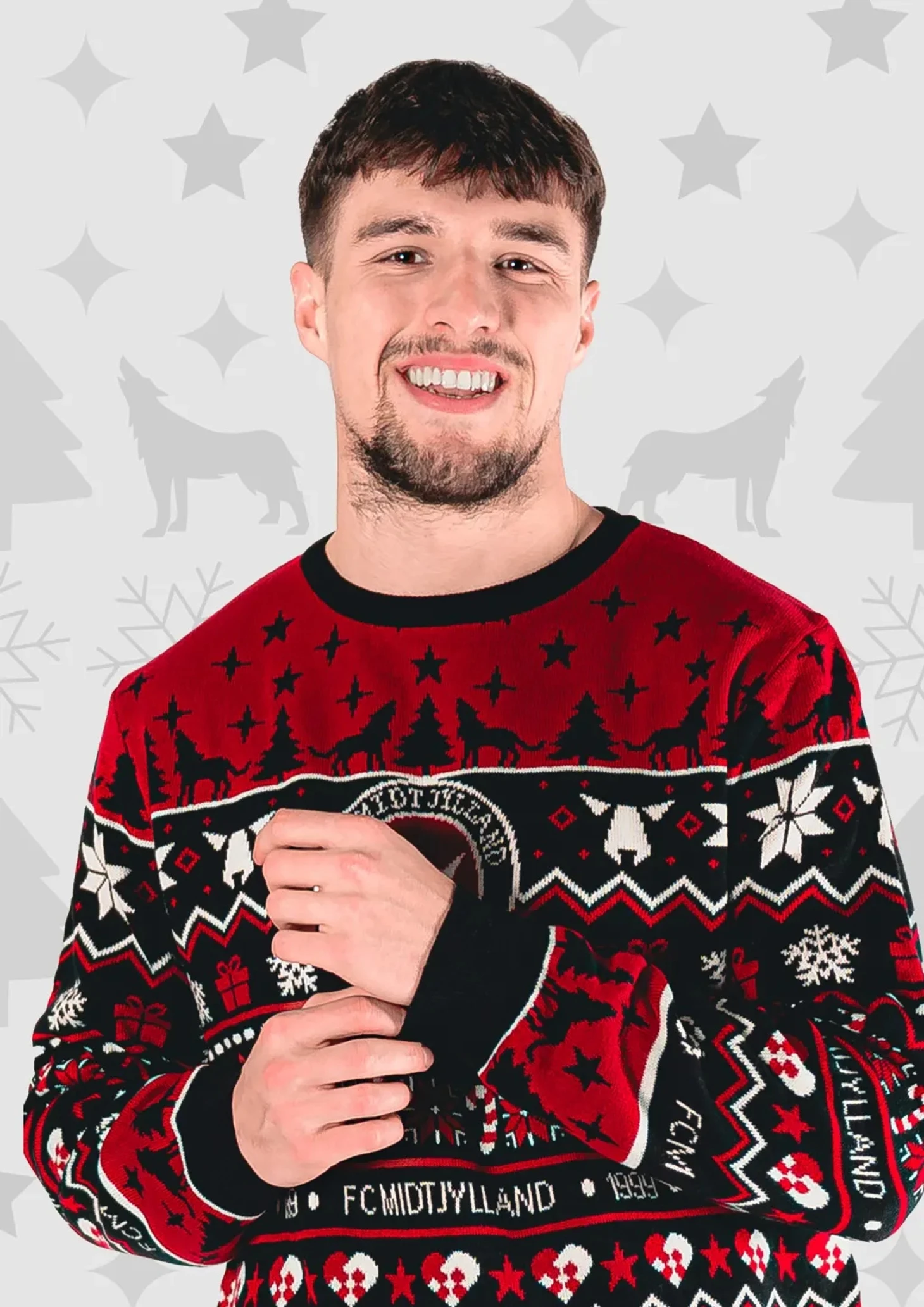 Классика — ключевое слово для рождественского свитера «Мидтьюлланна» 2024 года. Он украшен рождественскими сердечками, снежинками, леденцами и подарками. И, конечно же, в рождественскую ночь воют волки.