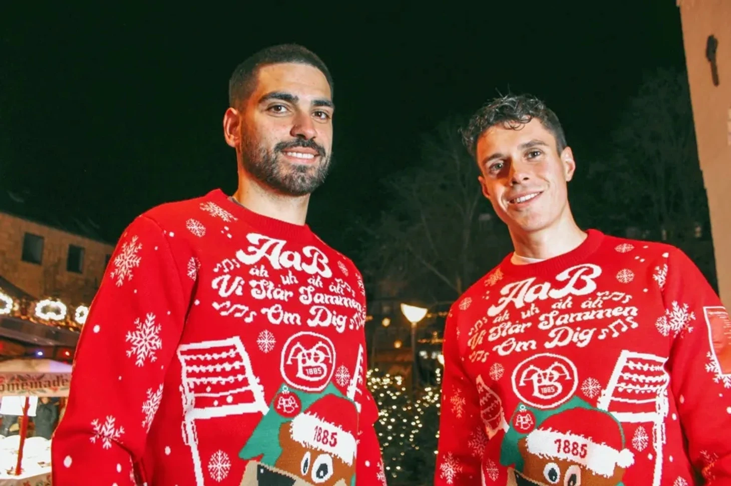Красно-белый рождественский свитер от «Ольборга» основан на песне 1988 года «Мы стоим вместе за тебя», и именно этот текст находится спереди. Также присутствуют огни Ольборгского парка и талисман Теодор (медведь). А на одном рукаве есть немного забавная деталь. Штрих-код, который ведет непосредственно к воспроизведению песни.