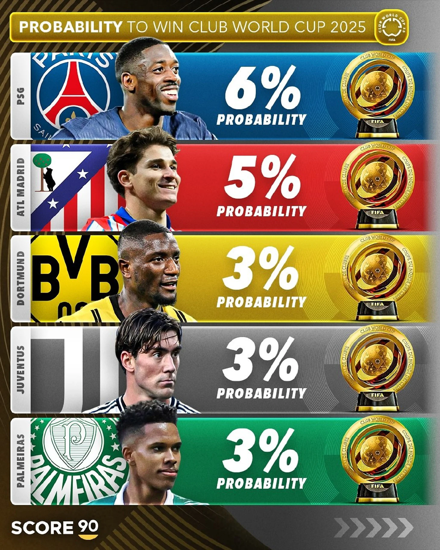 🤯 Суперкомпьютер оценил шансы команд на победу в клубном ЧМ. Фаворит вас точно удивит