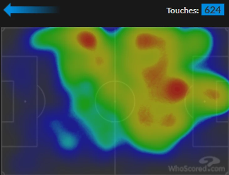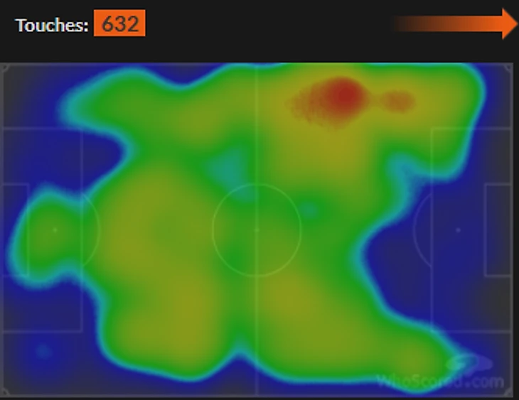 Вся эта история вылилась в довольно полярную тепловую карту «Милана» с необычным перекосом на правый фланг и пустотой на левом.