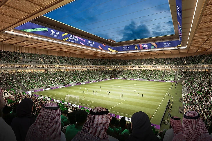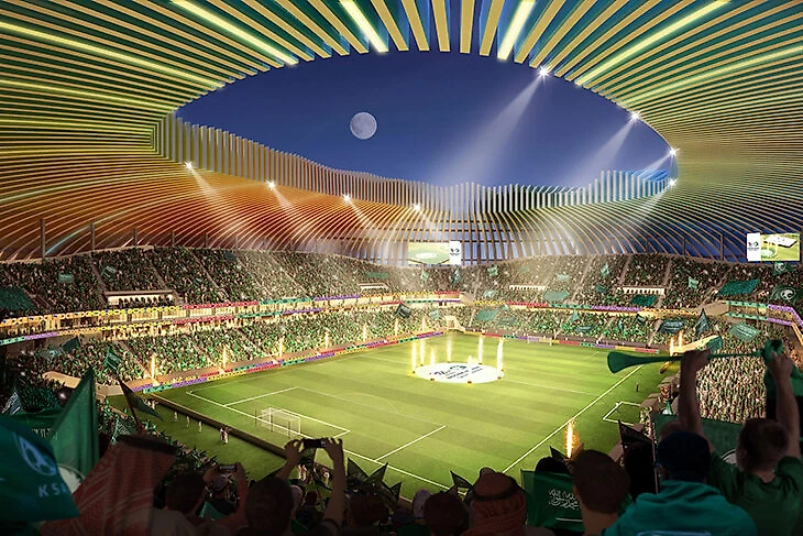 Турнир примут 15 стадионов в пяти городах: Эр-Рияд, Абха, Джидда, Эль-Хубар и строящийся город будущего Неом – из 15 арен 11 будут абсолютно новыми. Понятно, что большинство из них – это пока только рендеры. Но посмотрим, какие стадионы ждут нас и 26-летнего Ламина Ямаля через десять лет (кстати, снова осенью или зимой, по катарскому сценарию).