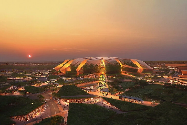 Главный стадион чемпионата мира, который примет и открытие, и финал, назван в честь правящего монарха. Дизайн арены разработало то же архитектурное бюро, которое делало знаменитую Сферу в Лас-Вегасе. Проект «Стадиона короля Салмана» показывает, как Эр-Рияд планирует преобразиться за десятилетие – как минимум, превратиться в очень зеленый город.
