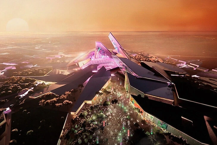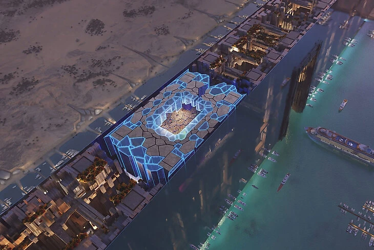 Вы наверняка слышали про Лайн-Сити – город-небоскреб на берегу Красного моря. Это как раз часть развития района Неом (от греческого слова Neo – новый – и первой буквы М в имени наследного принца Мохаммеда Бин Салмана). Стадион выглядит футуристично даже на фоне рендеров города – что-то из фантастических фильмов про галактический футбол.