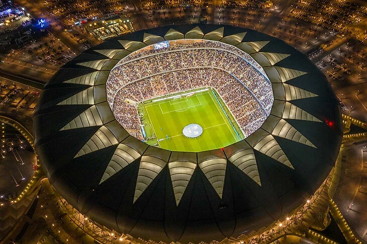 Главный стадион Саудовской Аравии из существующих – его еще называют «Жемчужиной среди стадионов» и «Шатром» из-за характерной крыши. Сейчас стадион закрыт на реконструкцию, которая завершится к 2026-му, но планируется еще один раунд работ – с 2027 по 2024 годы.