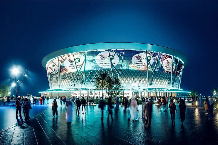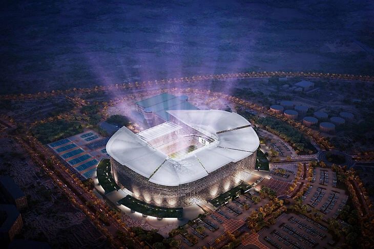 Строительство арены в новом районе Киддия на берегу Красного моря закончится в 2032 году. Яркий экстерьер стадиона – отсылка к волне, которую болельщики запускают на трибунах. После чемпионата мира стадион перестроят в мультифункциональный развлекательный комплекс.
