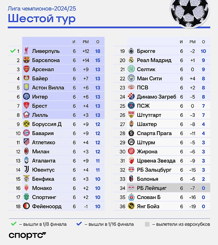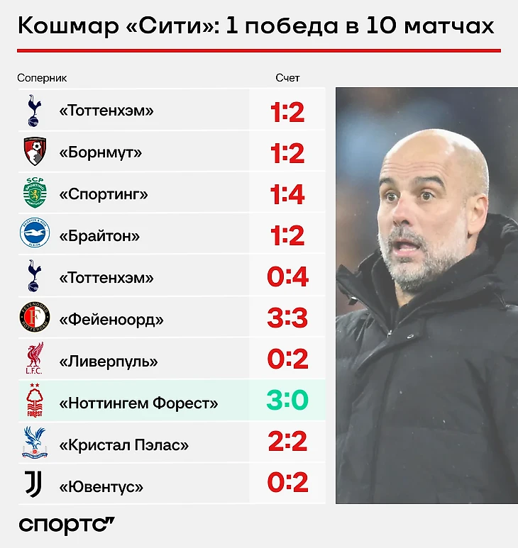 Команда Гвардиолы рухнула на 22-е место, в плей-офф проходит 24 команды. «Сити» всего на одно очко опережает 25-й «ПСЖ». И в январе у них очный матч – возможно, кого-то из грандов мы не увидим в следующем раунде. Потом у «Сити» домашняя игра с «Брюгге» – должно быть проще.