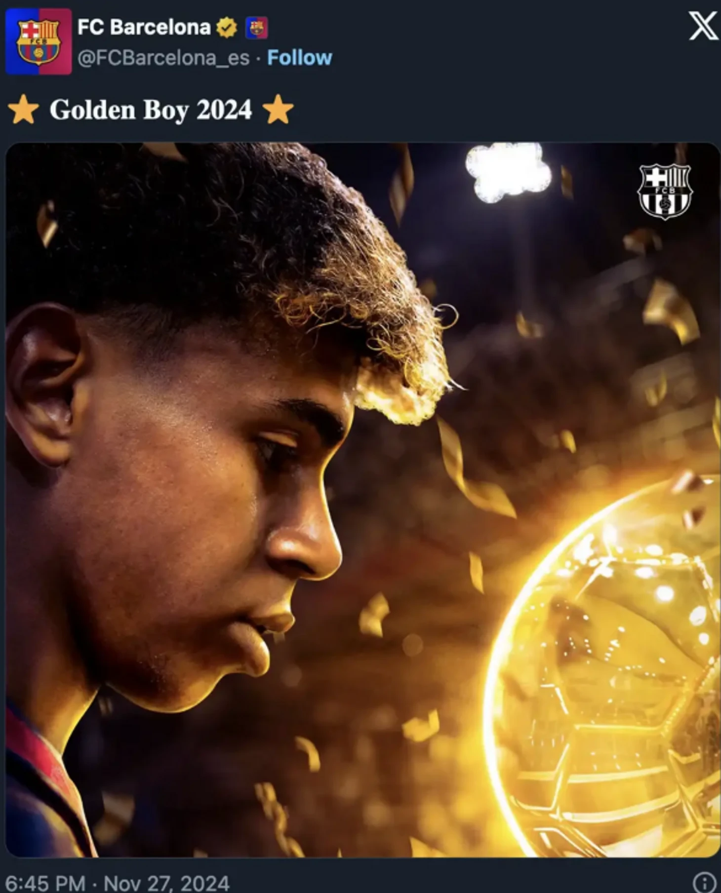 Ламин Ямал выиграл награду Golden Boy, но не будет присутствовать на церемони награждения.