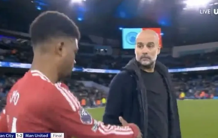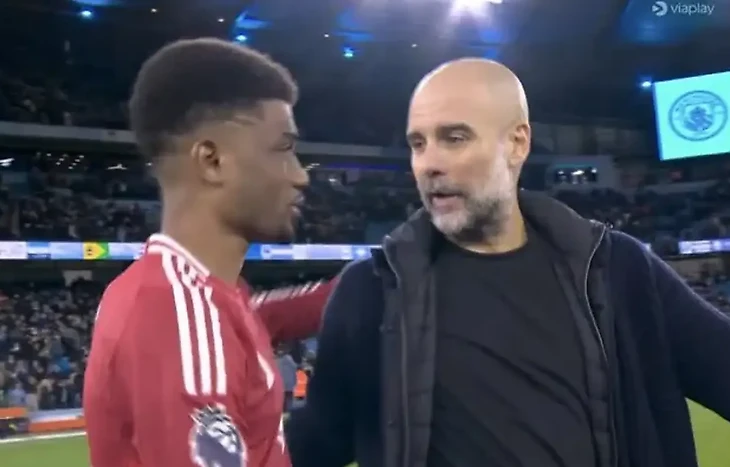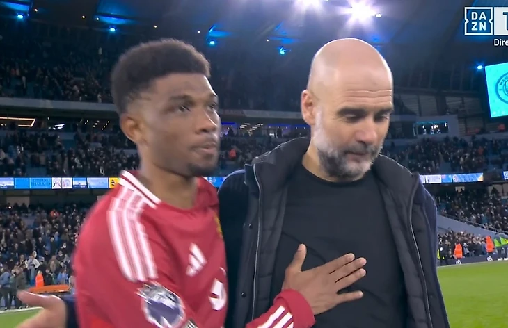 «Пеп, оставайся скромным»: Амад подошел к Гвардиоле после матча и подарил новый мем. Фанаты в восторге