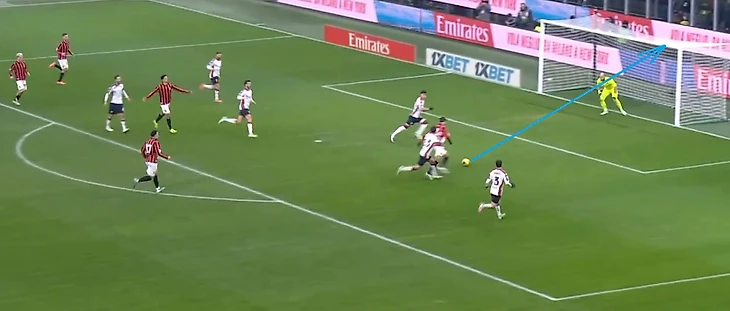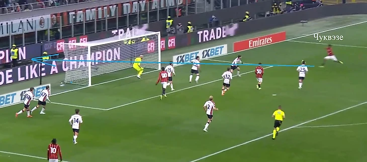 Здорово сыграл с Леао в стенку и сделал кросс в штрафную на дальний угол вратарской, откуда мог забивать Чуквуэзе, но мимо.