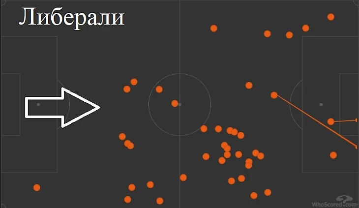Играл Либерали на позиции травмированного Пулишича. Хорошо двигался весь предоставленный отрезок матча, правильно открывался, видно, что четко выполняет задание тренера. Стоит отметить, что он не стесняется принимать смелые решения, отдавать пасы в разрез, где это уместно, стараться обыграть оппонента 1 в 1. При этом дриблингом не злоупотребляет. Для своих габаритов умело оттесняет соперников. На дриблинге чуть не заработал пенальти у боковой линии штрафной, но судья посчитал контакт недостаточным. При этом сам чуть не привёз пенальти, судья остался такого же мнения о контакте.