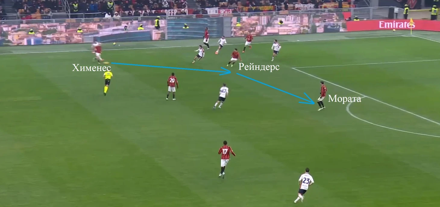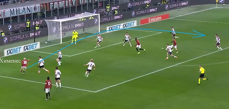 Обе желтые карточки в матче игроки «Дженоа» заработали именно фолами на Хименесе, в одном эпизоде в полуметре от боковой линии штрафной его остановил Вольякко, в другом на углу штрафной Заноли. Обе позиции перспективные для розыгрыша или прямого удара.