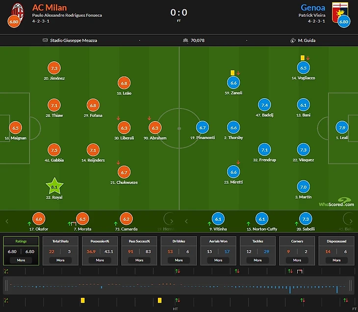 Матч 16го тура Серии А против «Дженоа» был примечателен не только 125-летием клуба, ретро формой и капитанством Рафы Леао, но и появлением в составе «Милана» сразу трёх юных футболистов. Я решил уделить внимание их игре.