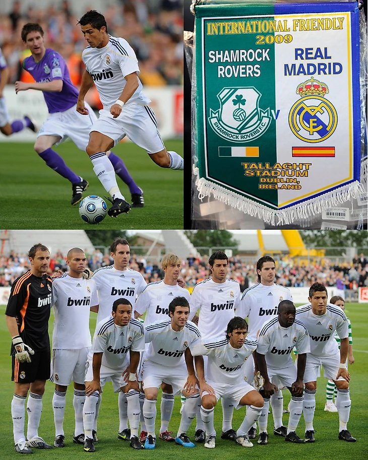 🔸В 2009-ом году на стадион «Шэмрока» приезжал «Реал Мадрид». Это был дебютный матч для Мануэля Пеллегрини в качестве тренера «Реала». Также свой дебют за мадридский клуб оформил дорогостоющий новичок «Реала» Криштиану Роналду. Как писали многие СМИ, Криштиану в той игре смотрелся блекло и дважды очень плохо пробил штрафные удары. Португалец был заменён после первого тайма. «Реал» всё-таки добыл победу 0:1 на стадионе «Талла» благодаря голу ещё одного новичка – Карима Бензема.
