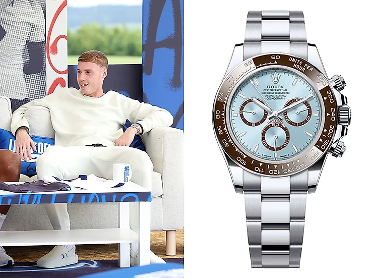 А GQ подмечает, что у Палмера часы Rolex цвета льда.