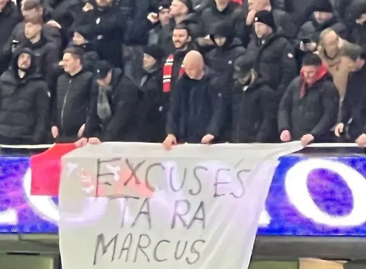 Фаны «Юнайтед» вывесили баннер с надписью «Оправдания. Да здравствует Маркус» во время полуфинала Кубка лиги с «Тоттенхэмом» (3:4).