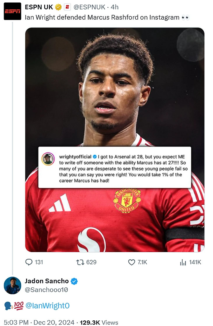 С Райтом согласился Джейдон Санчо, игравший с Рэшфордом за «Ман Юнайтед» и сборную Англии.