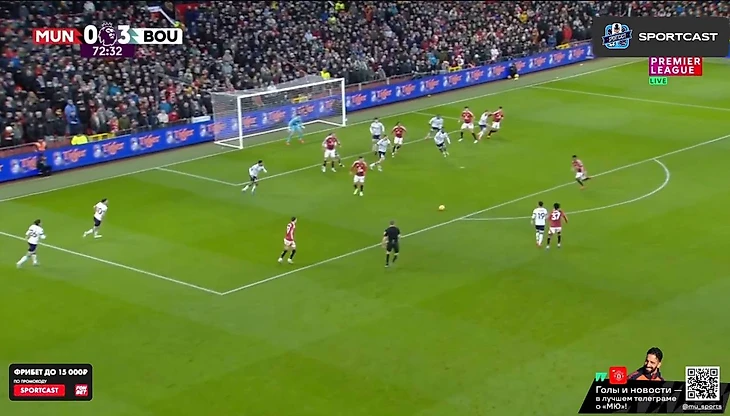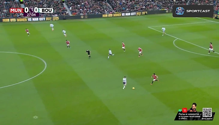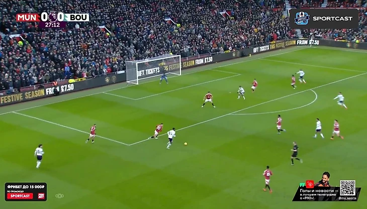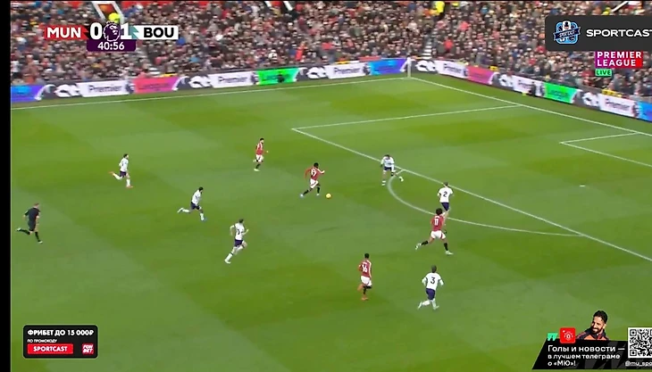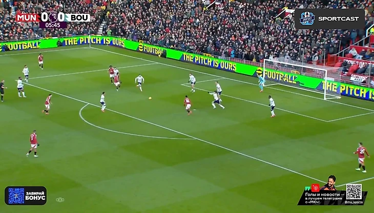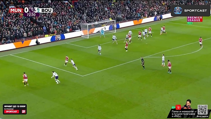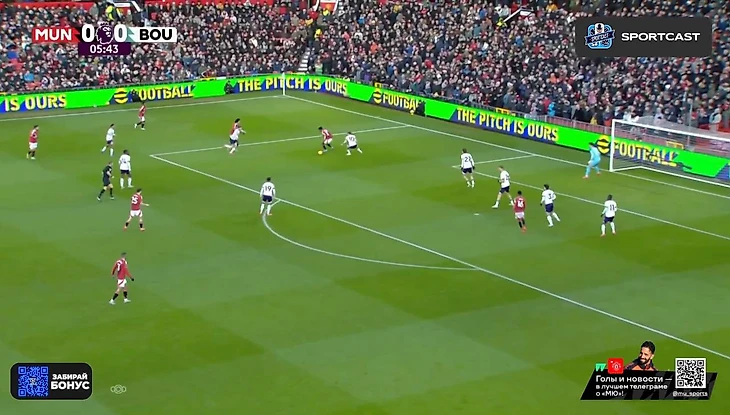 С первых минут бросилось в глаза, насколько не попал в игру Антони. Бразилец вышел на позиции номинального вингера (в системе Аморима – инвертированного или по сути 10-ки), но команда постоянно сталкивалась с проблемами выхода через его фланг. Игрок либо мешкал с мячом, либо оказывался в довольно широкой позиции – действия невпопад и недоходившие в ноги передачи тому подтверждение.