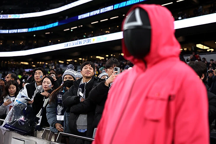 Конечно, Netflix запартнерился с «Тоттенхэмом», там ведь кумир миллионов корейцев Сон Хын Мин. В перерыве матча с «Ливерпулем» стюардов заменили охранники в узнаваемых красных костюмах и черных масках из сериала.