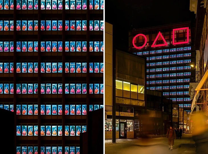 Полицейская башня Oudaan в Антверпене превратилась в рекламную инсталляцию: фасад здания украсили 432 фигурки охранников, а на крыше появились фигуры с логотипом шоу.