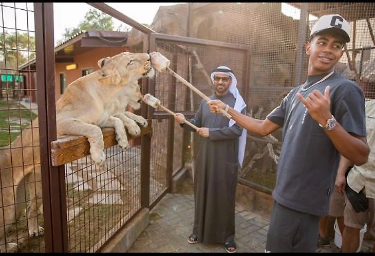 В Эмиратах футболист расслабился, посетив парк с дикими животными, где контактировал с тиграми, змеями, медведями и обезьянами. Все под присмотром гида.