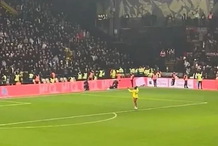 Позже появилось такое фото с трибун: Баа сознательно провоцировал чужих фанатов.