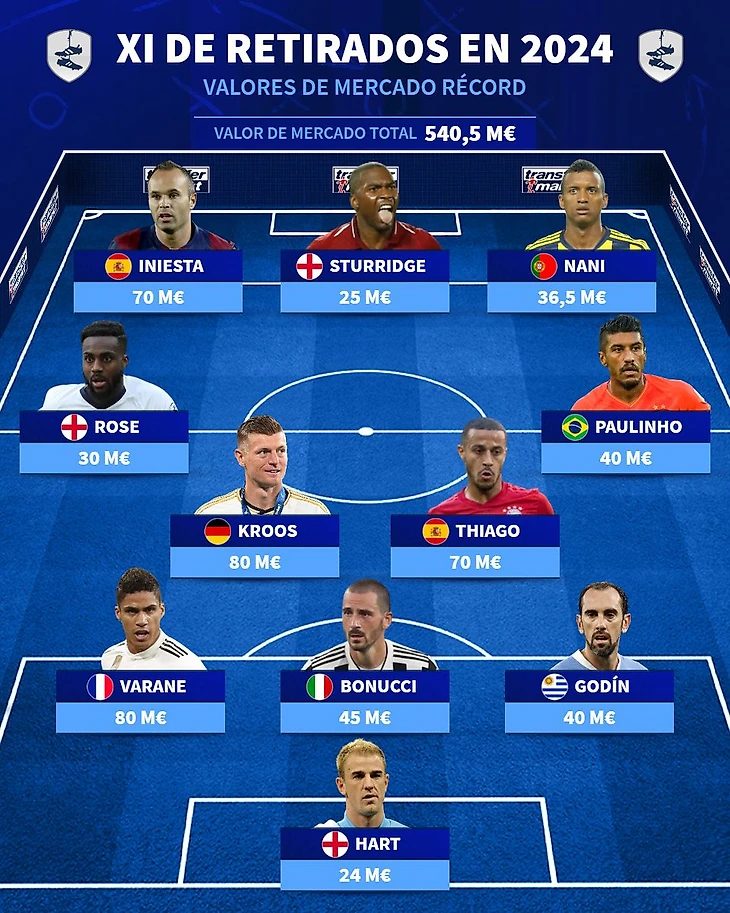 Transfermarkt составил символическую сборную из игроков, повесивших бутсы на гвоздь в уходящем году. Помимо Крооса, Тиаго и Варана в команду вошли Дэниэл Старридж, Нани, Дэнни Роуз, Паулиньо, Леонардо Бонуччи, Диего Годин и Джо Харт.