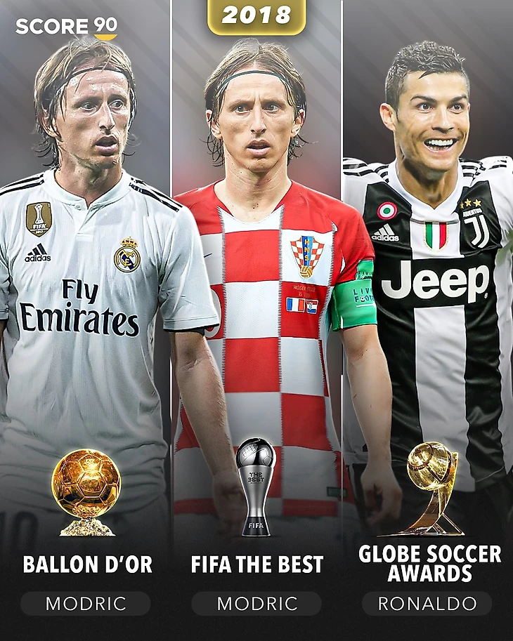 Лука Модрич довел сборную Хорватии до финала чемпионата мира в России, помог «Мадриду» в очередной раз взять Лигу чемпионов, за что получил «Золотой мяч» и приз The Best. Роналду в 2018 провел 75 матчей, забил 65 голов и отдал 17 ассистов, португалец вновь был признан лучшим на церемонии Globe Soccer Awards.