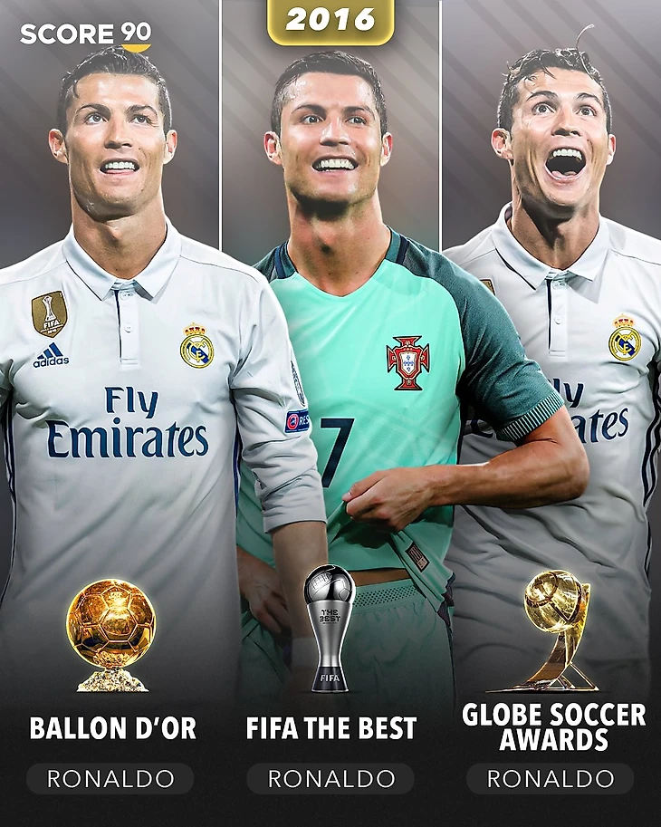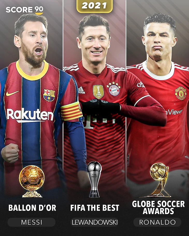 Портал Score90 вспомнил, кто за последние годы брал три индивидуальные награды в мужском футболе.
