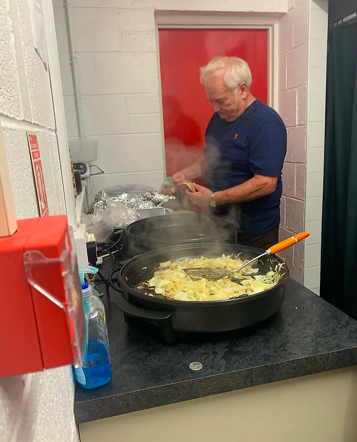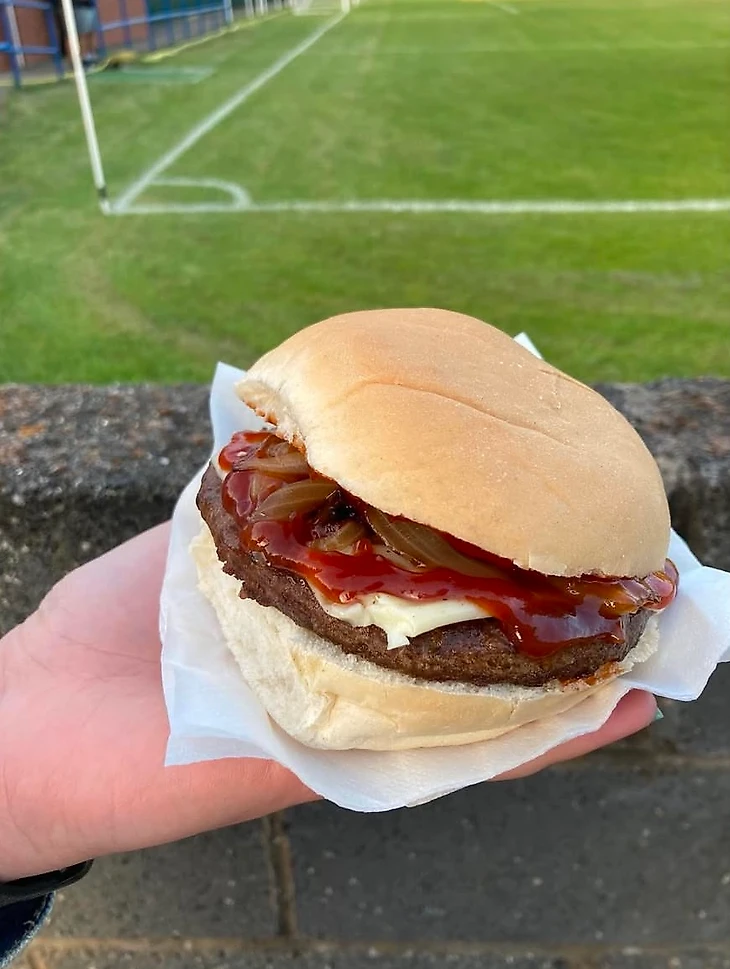 На стадионе работает отличный барчик, где приветливый мужчина готовит сочные бургеры с секретным ингредиентом — карамелизованным луком. Это придает им «тот самый вкус».