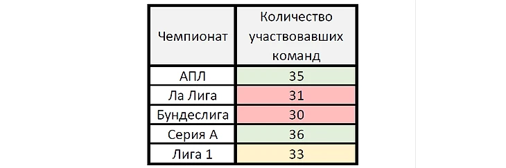 Уверенное первое место — у Ла Лиги. Также стоит отметить неожиданное отставание АПЛ — лишь 1 балл в их копилку.