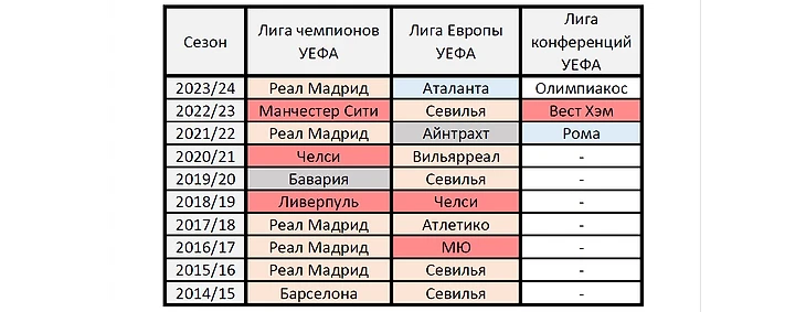 Конечно, проще всего оценить силу лиг в их прямом столкновении, в еврокубках. Соответственно наш второй критерий — титулы на европейской арене. Считаем только кубки, ведь сильнейший забирает все, не так ли?