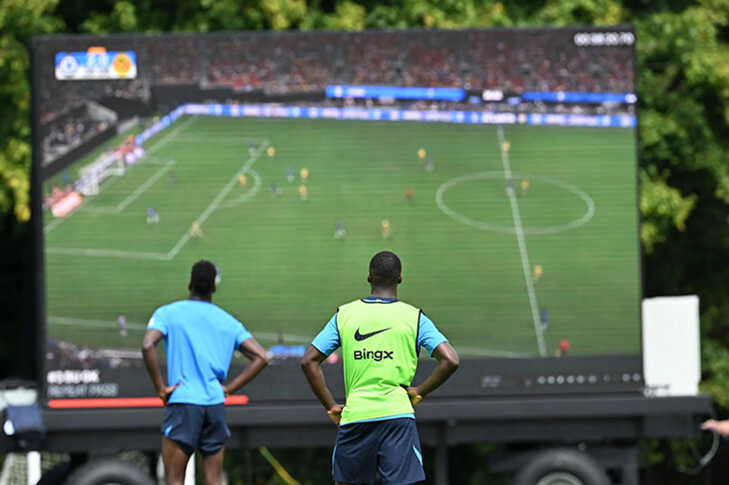В Кобхэме поставили огромный экран у поля, на нем демонстрировали расписание тренировок и инструкции по выполнению упражнений. Во время игровых упражнений и двухсторонок движения игроков записывали с разных ракурсов. В конце занятий Мареска разбирал на экране главные ошибки. Но не для критики – хотел, чтобы партнеры понимали задачи друг друга и правильно распределяли зоны ответственности.