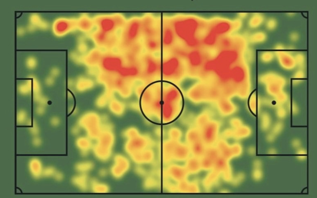 Тепловая карта англичанина по всему сезону отлично иллюстрирует его уровень влияния: