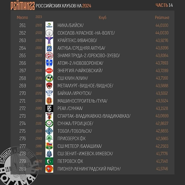 273. (164) СПАРТАК-ВЛАДИКАВКАЗ /ВЛАДИКАВКАЗ/ 43,06990
