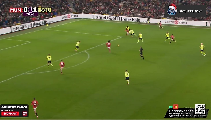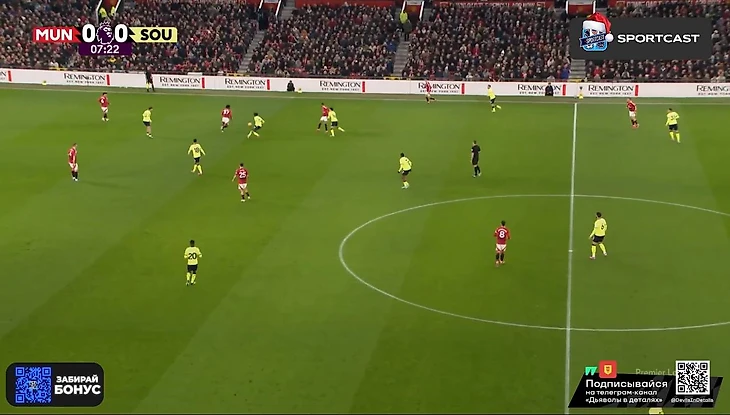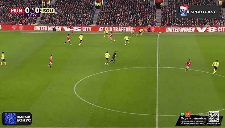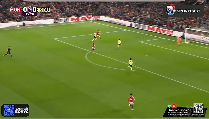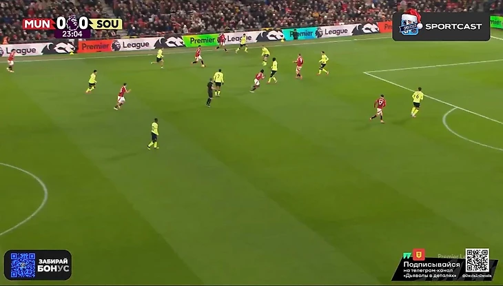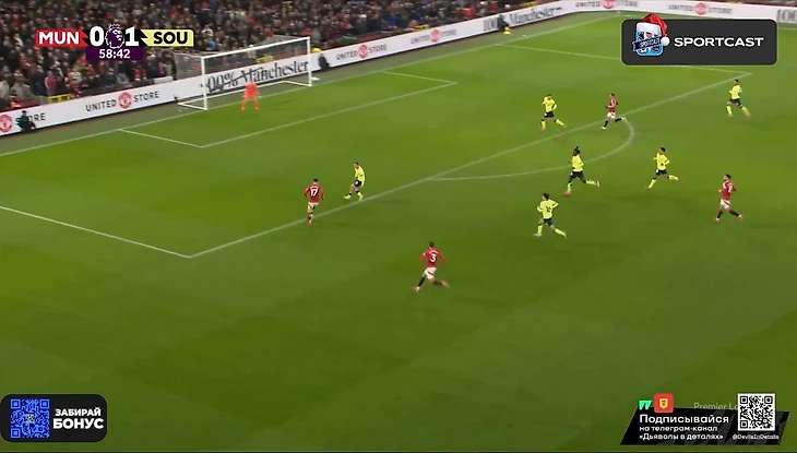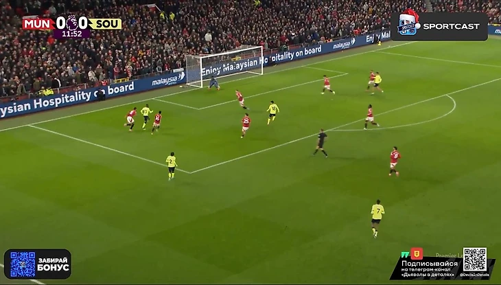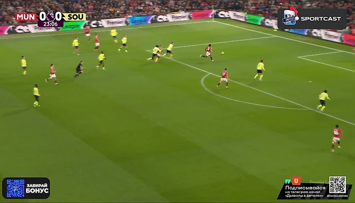 Тем не менее, у подопечных Аморима было несколько успешных выходов из-под прессинга, которые потенциально могли привести к голам. Сначала в своем фирменном стиле на оперативном просторе оказался Расмус, но в стадии завершения подкачал Гарначо.