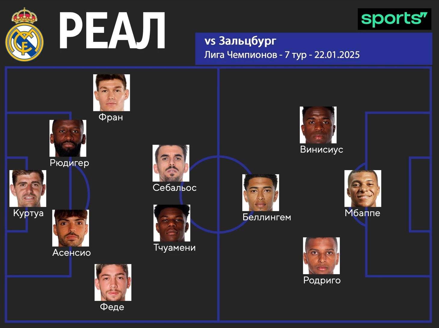 Тчуамени займет место в центре рядом с Себальосом, а Винисиус вернется в старт и сыграет на левом фланге. По остальным позициям особых изменений ожидать не стоит – матч ключевой и его надо выиграть, поэтому выйдет сильнейший из возможных составов.