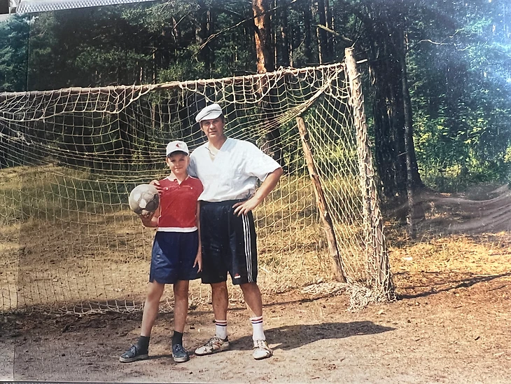 Вот здесь я первый раз бью по мячу со своим отцом: Тверь, стадион (хотя какой стадион, заболоченное большое футбольное поле, каждую весну затапливаемое прорывающейся канализацией) «Луч». Ворота огромные, да попробуй забей, точнее, добей еще до них, мне тут года 4…