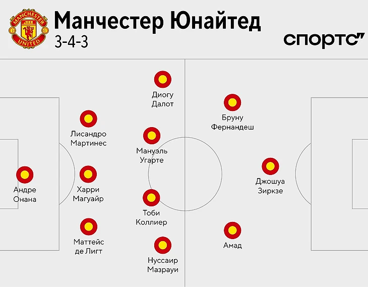 Линия обороны зависит от степени повреждения Йоро и Де Лигта. Помимо травмы, Аморим говорил об усталости Лени: француз нестабильно играл в первой половине сезона, а сейчас получает много времени на поле. Поэтому склоняемся, что в основе выйдет Де Лигт.