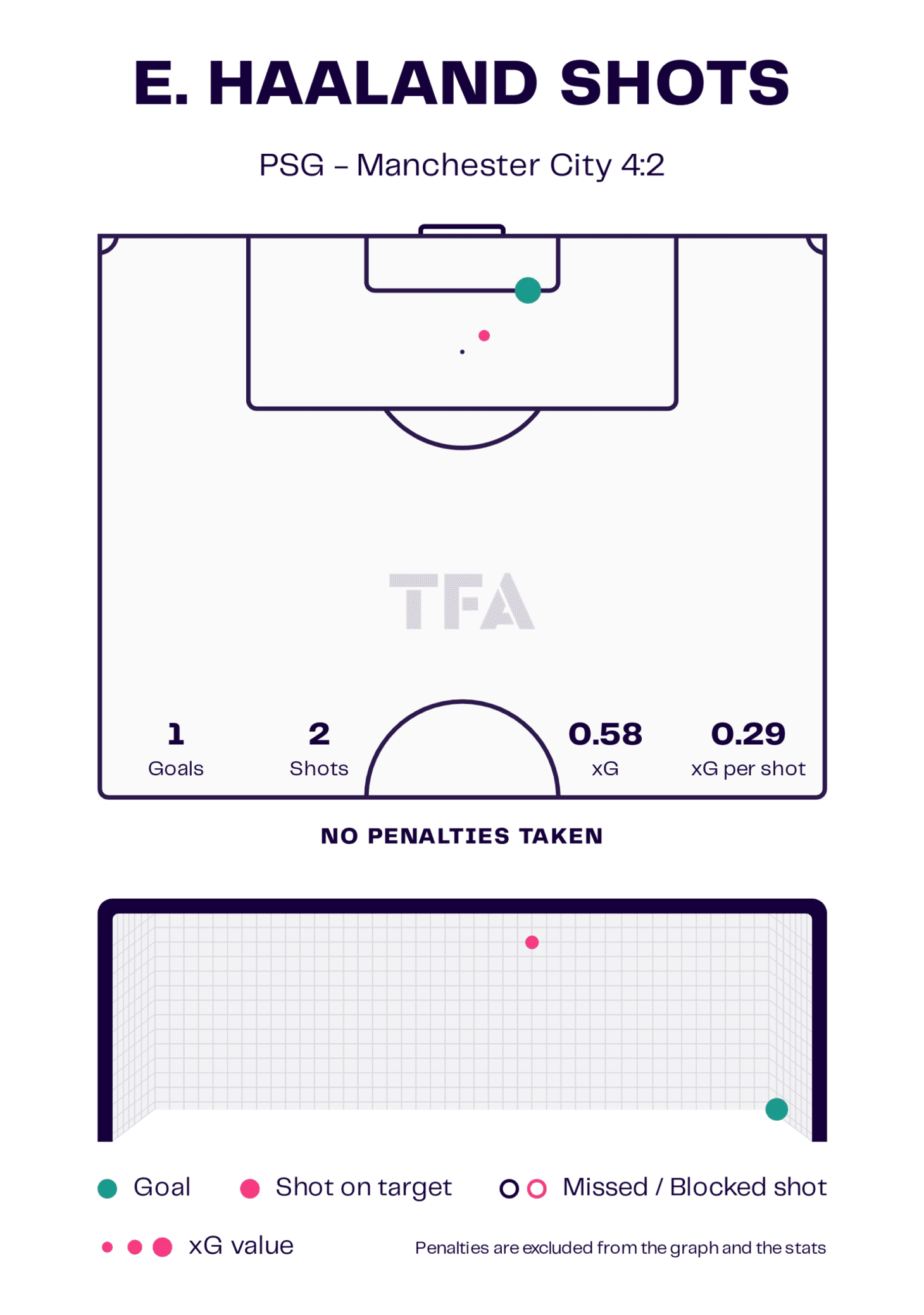 Несмотря на норвежскую тишину в первом тайме, Холанд начал оказывать большее влияние на игру во втором тайме. После того как «ПСЖ» пропустил, они начали больше рисковать и задерживаться выше по полю, а «Манчестер Сити» получил больше пространства для контратак. Этот тактический сдвиг дал Холанду больше пространства и у него было больше шансов получить мяч в удобной позиции, или фирменно атаковать пространство.